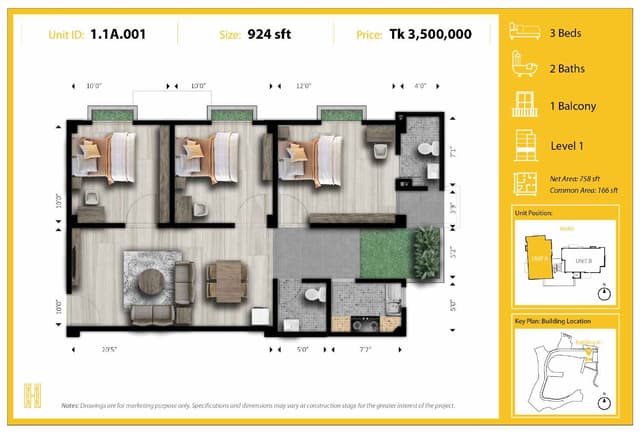 Almost all buildings have only 4 flat on each floor on 7 storied buildings offering low density living that is expected to be a benchmark for affordable housing. Every building is designed with a lift and in compliance with fire hazard protocol.